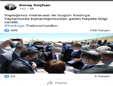 Gümüşhane sınırlarında 430 yaylası ile Doğu Karadeniz Bölgesinde en fazla yaylaya sahip olan ve bu yaylalarda Gümüşhane’lisi Trabzon’lusu ve Giresun’lusu ile kardeşlik hukuku içinde yaşayan halkımızı Maçka Belediye Başkanı Koray Koçan’nın paylaşımları rahatsızlık vermiştir.